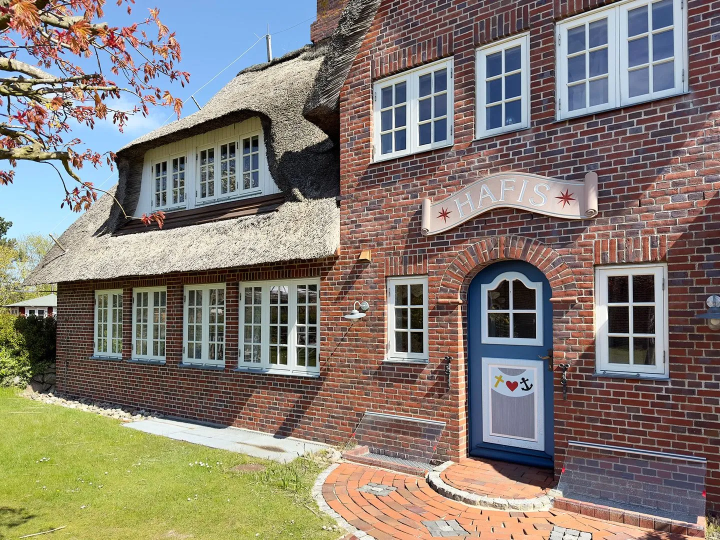 Die Ferienwohnung 9 im Haus Hafis (Friesenhof) in Nebel auf Amrum ist eine 1,5-Zimmer-Maisonette-Ferienwohnung unter Reet (ca. 29 qm Wohnfläche) mit Schlafmöglichkeiten für 1 bis 2 Personen. Die Ferienwohnung befindet sich im 1. Ober- und Dachgeschoss.