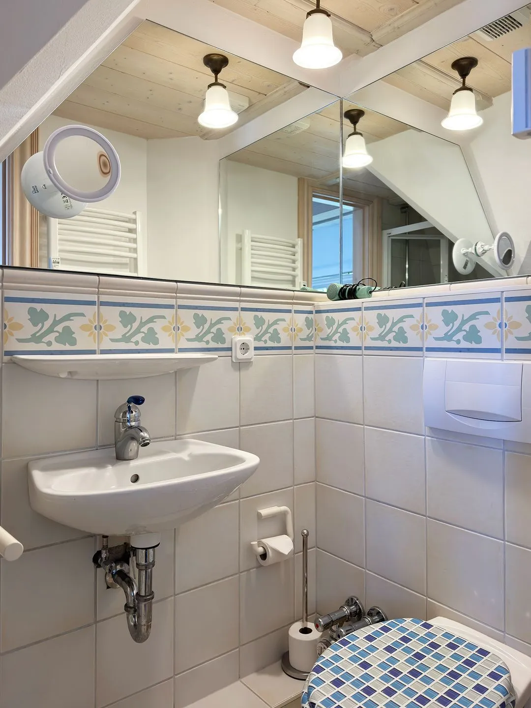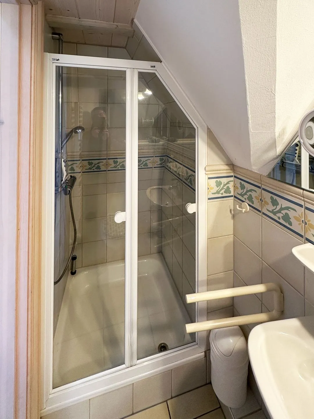 Badezimmer mit Dusche, WC, Waschbecken