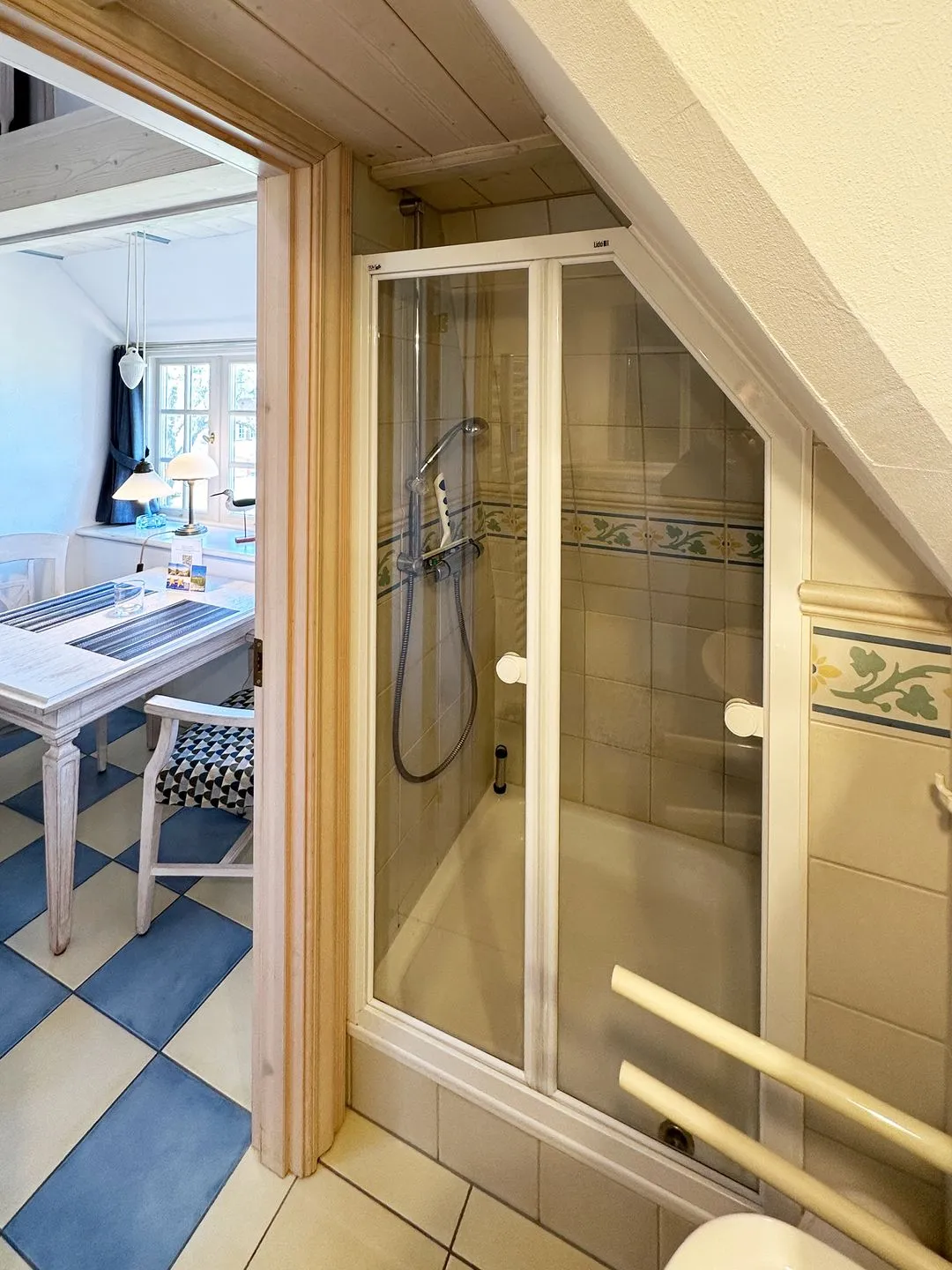 Die Wohnung verfügt über 1 Wohnraum mit WLAN, Sat-TV, 1 Küche, 1 offenes Schlafzimmer im Dachgeschoss, 1 Badezimmer mit Dusche und WC. Zur Wohnung gehört ein Sitzplatz im Garten. Dieser ist mit Ferienwohnung 9 gekennzeichnet.