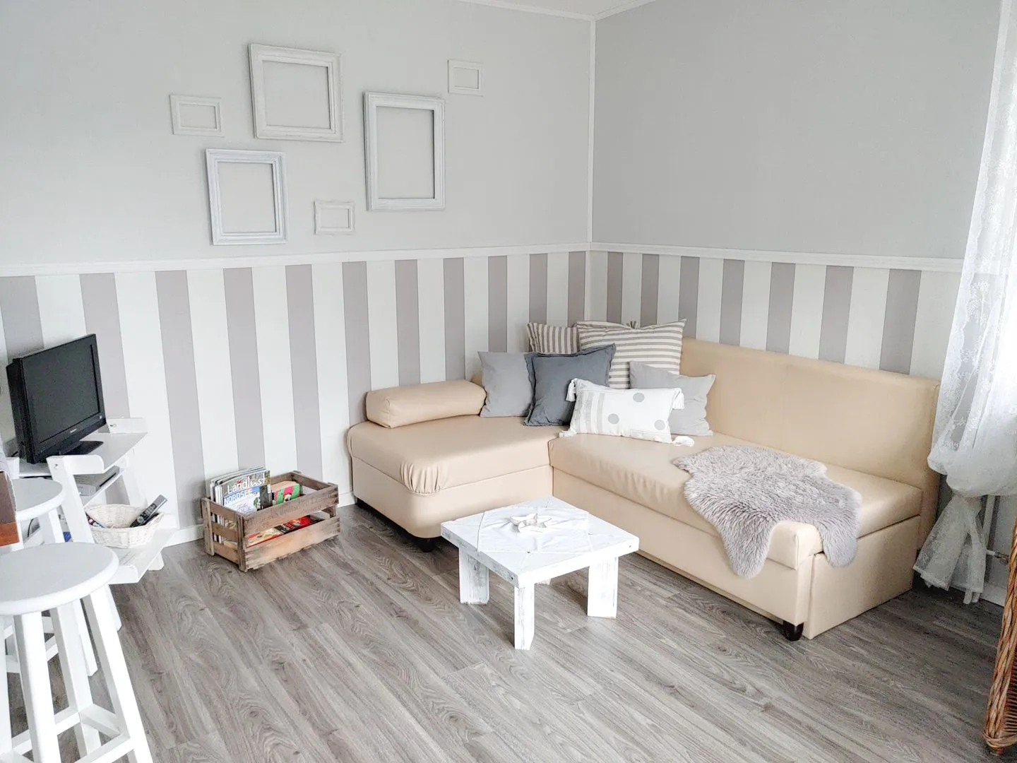 Die geschmackvolle maritime Einrichtung, die Lage der kleinen Ferienwohnung
