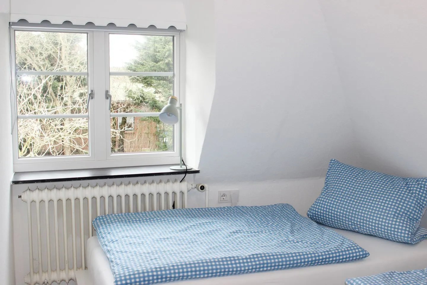 Ferienwohnung *Frisia 5* im Dachgeschoss des Hauses *Frisia* in Norddorf auf Amrum ist eine 4-Zimmer-Ferienwohnung (ca. 65 qm Grundfläche) mit Schlafmöglichkeiten für bis zu 2-5 Personen mit Blick auf die Salzwiesen, das Wattenmeer in Richtung Föhr.