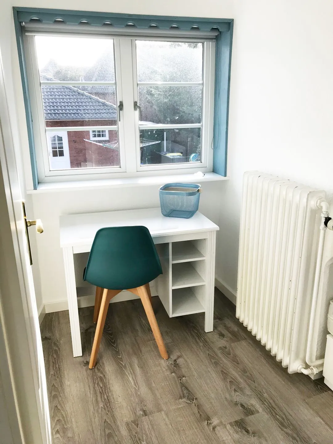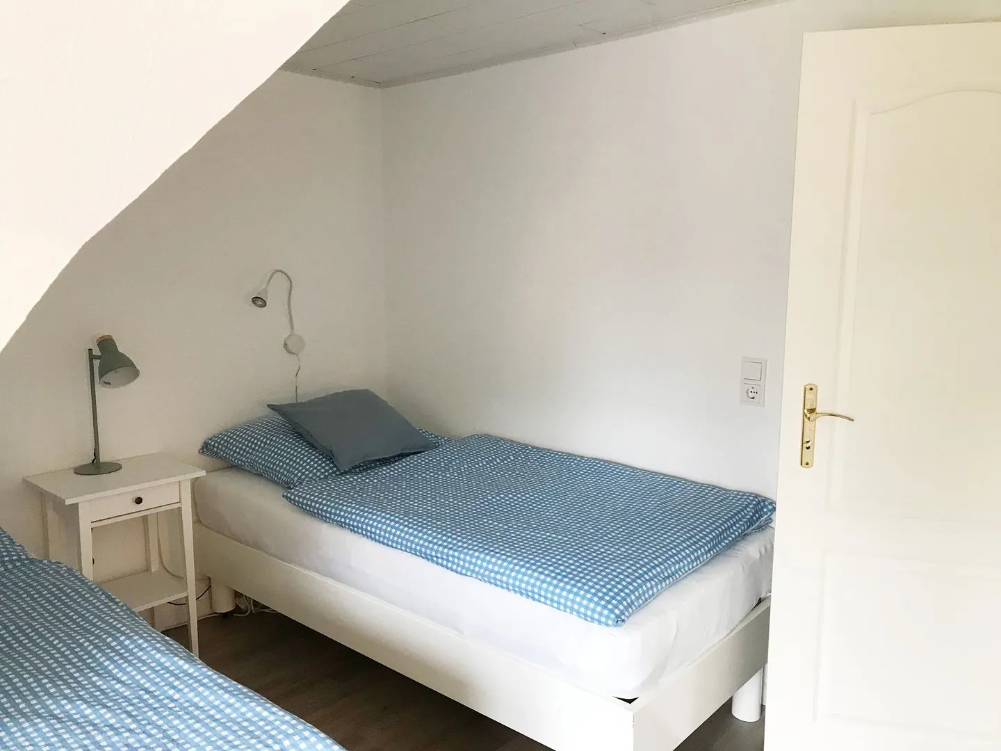 1 Schlafzimmer mit 1 Einzelbett (90 x 200), 1 Nachttisch, Kleiderschrank, Verdunkelungsmöglichkeit