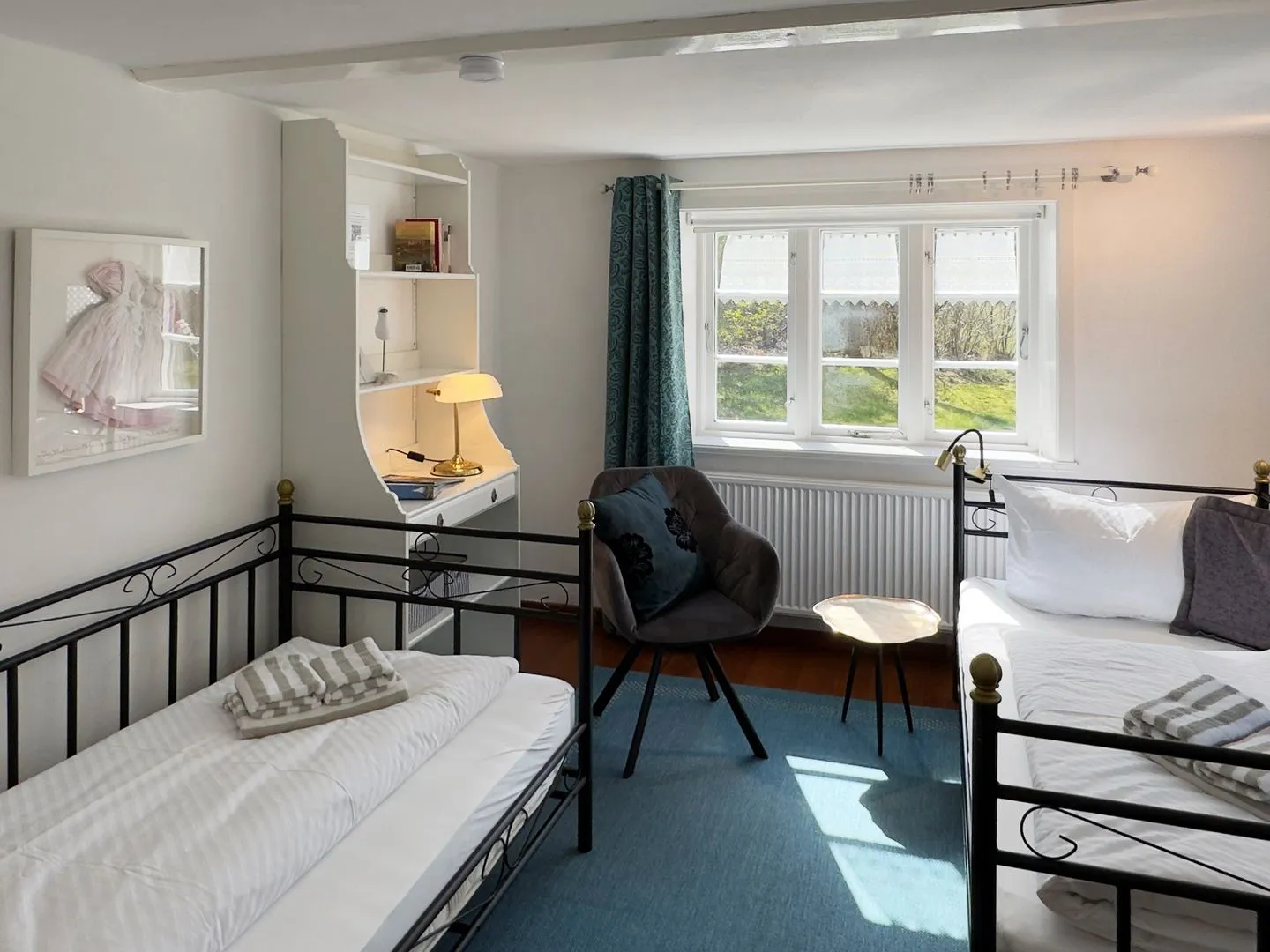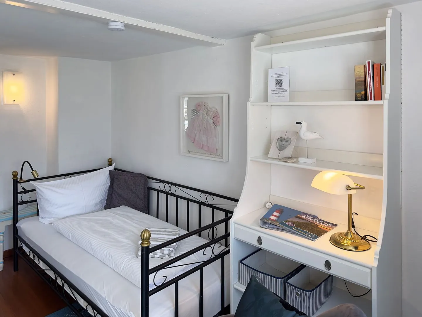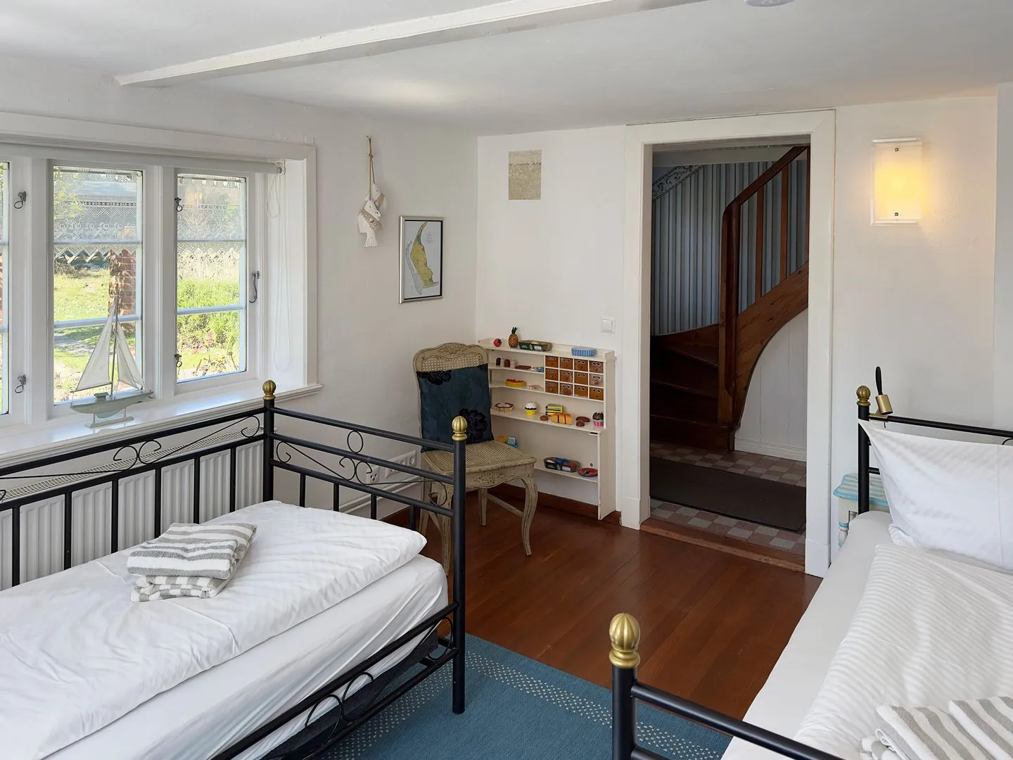 1x Schlafzimmer mit 2 Einzelbetten (je 90 x 200cm), 1 antiker Kaufladen, 1 Kinderstrandstuhl, 1 Schaukelstuhl als Leseplatz