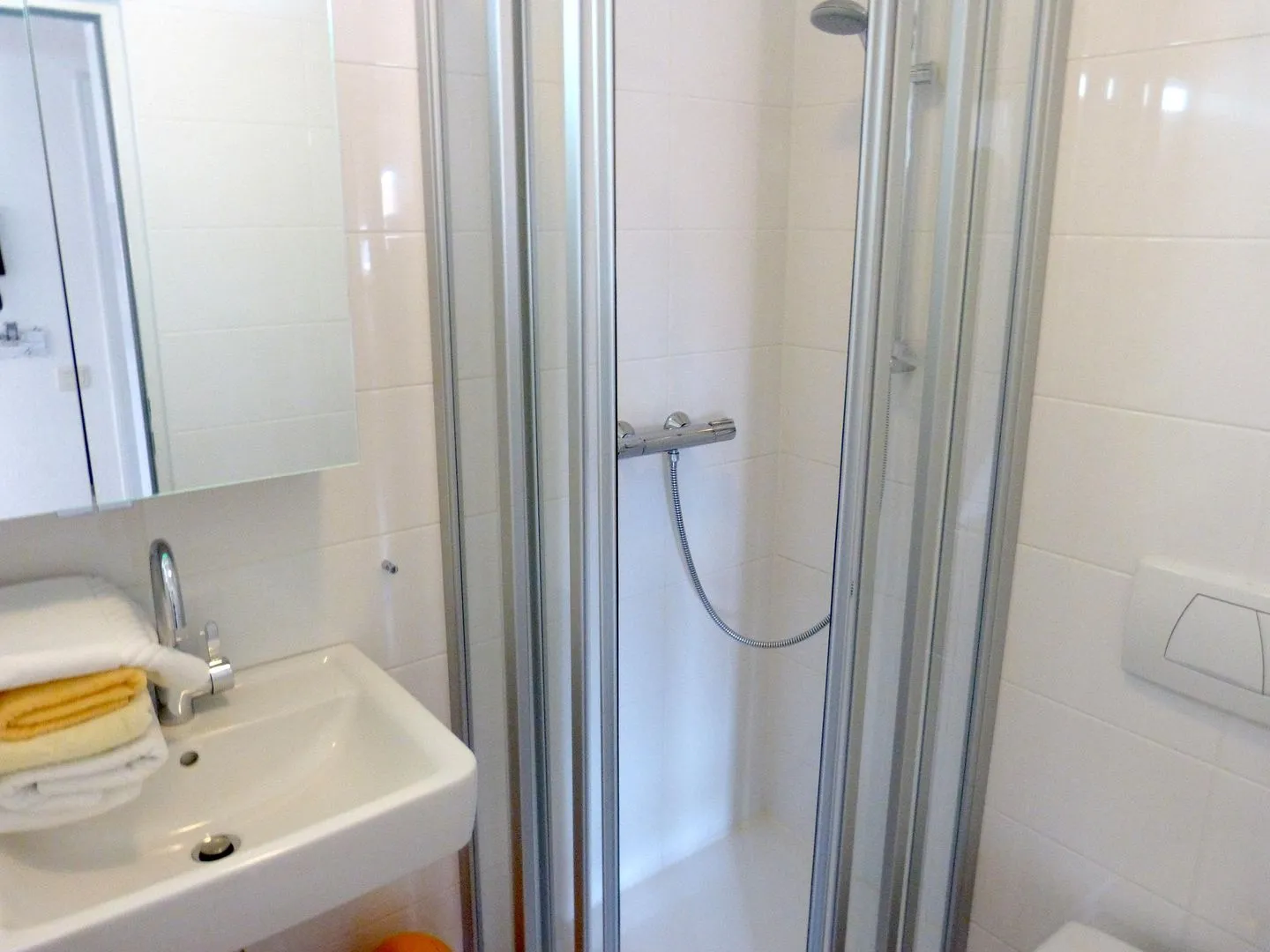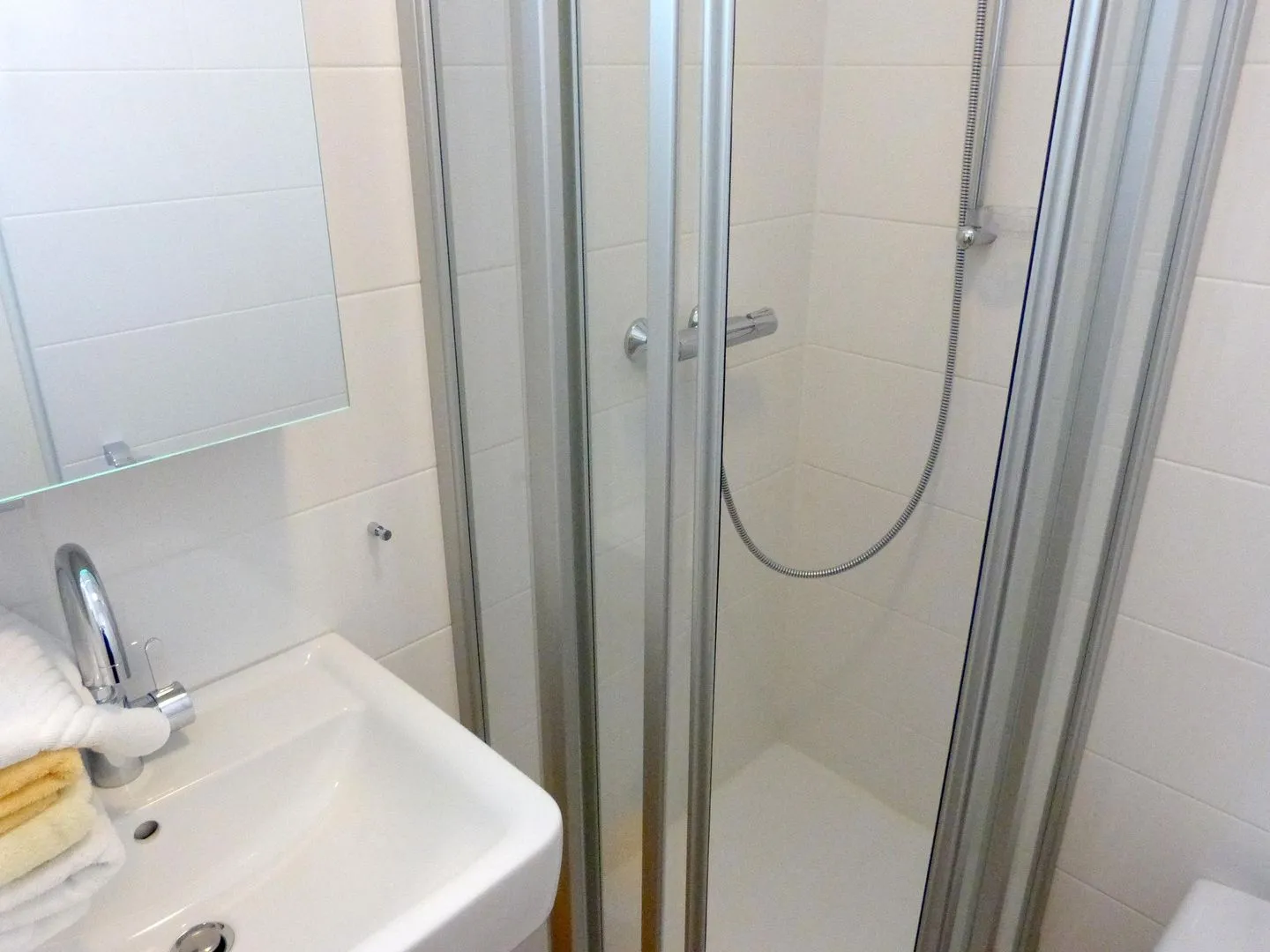 Das Schlafzimmer ist ein weiterer Rückzugsort, der sich durch seine Ruhe und Bequemlichkeit auszeichnet – damit Sie frisch und ausgeschlafen in den Tag starten können. Das moderne Badezimmer mit Dusche bietet Ihnen alle Annehmlichkeiten, die Sie benötigen, um sich zu erfrischen und entspannen.