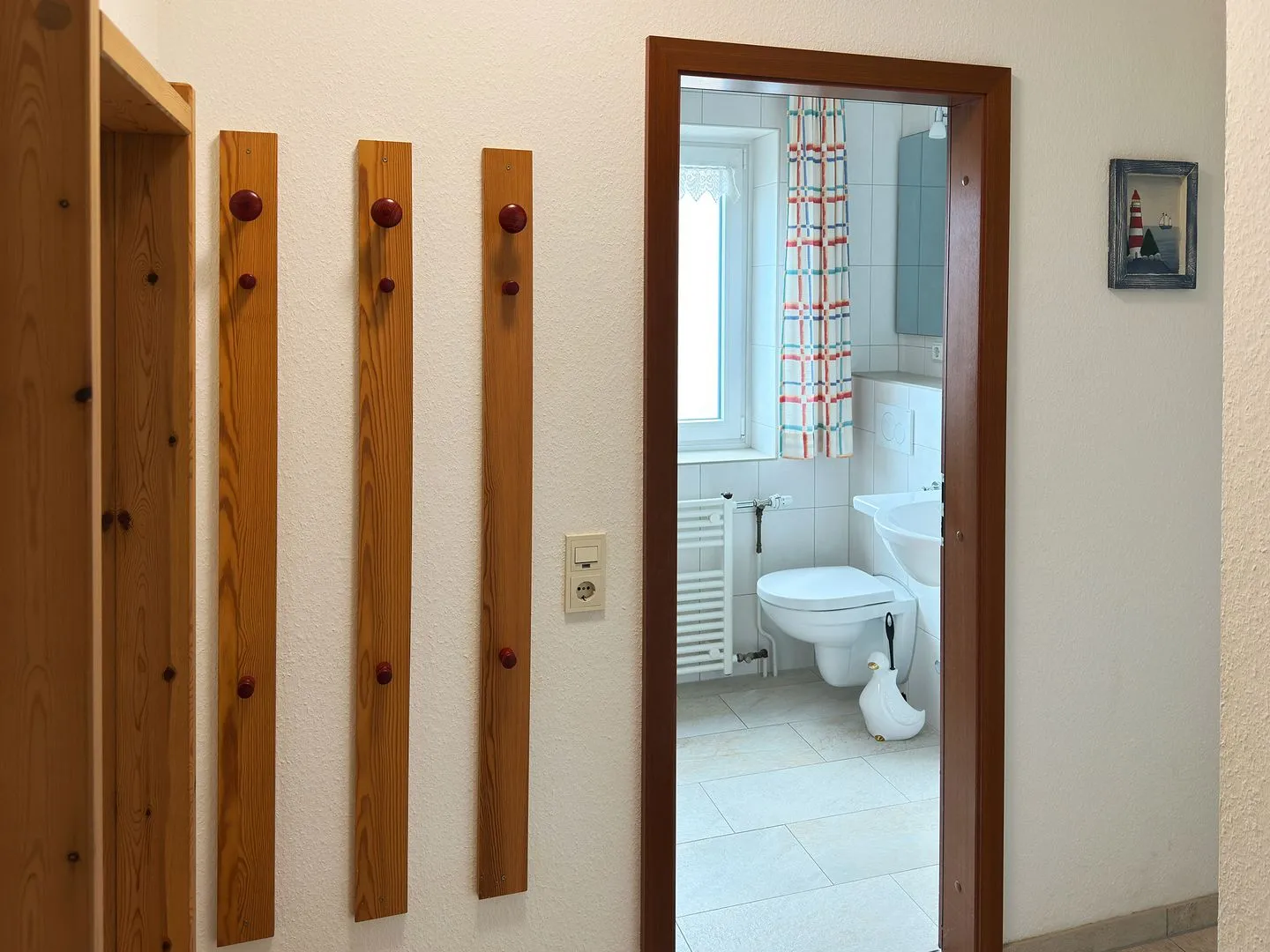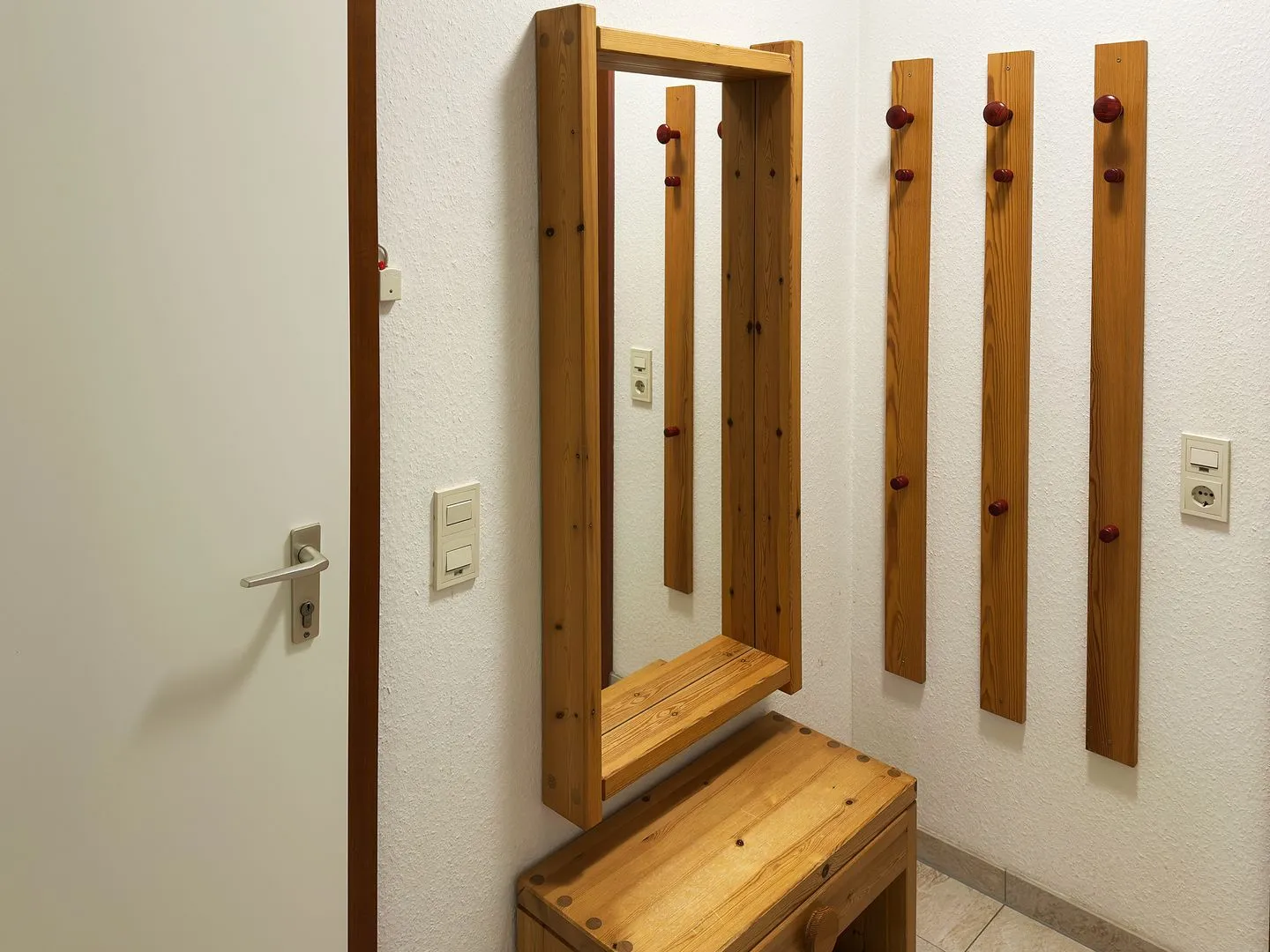 Die Wohnung verfügt über einen Wohnraum mit WLAN, Sat-TV, Küche, ein Schlafzimmer, ein Badezimmer mit Dusche und WC; eine offene Süd-Terrasse mit 4 Gartenstühlen und Tisch (April bis Oktober) sowie Blick über die Straße auf die Dünen. Eine Münz-Waschmaschine und ein Münz-Trockner stehen zur Gemeinschaftsnutzung im Keller des Hauses 1c zur Verfügung.