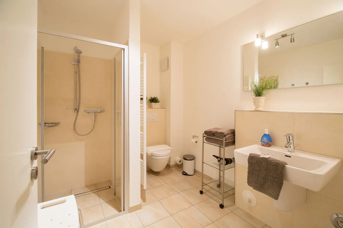 Badezimmer im Untergeschoss mit bodengleicher Dusche