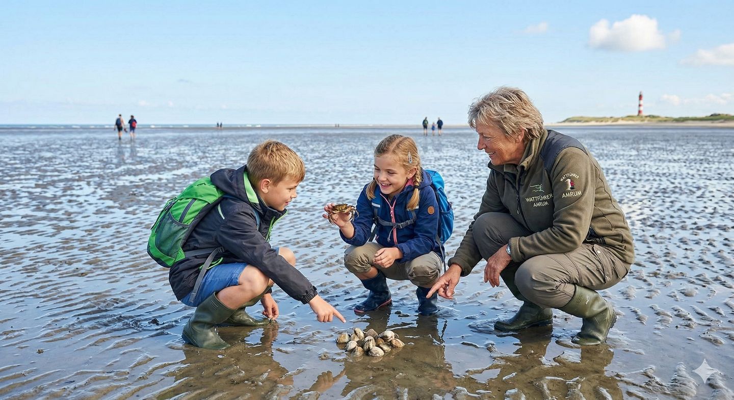 Ja, Amrum ist äußerst kinderfreundlich! Der flach abfallende, extrem breite Kniepsand, wenig Autoverkehr und zahlreiche Naturerlebnisse machen die Insel zum perfekten Ziel für Familien.