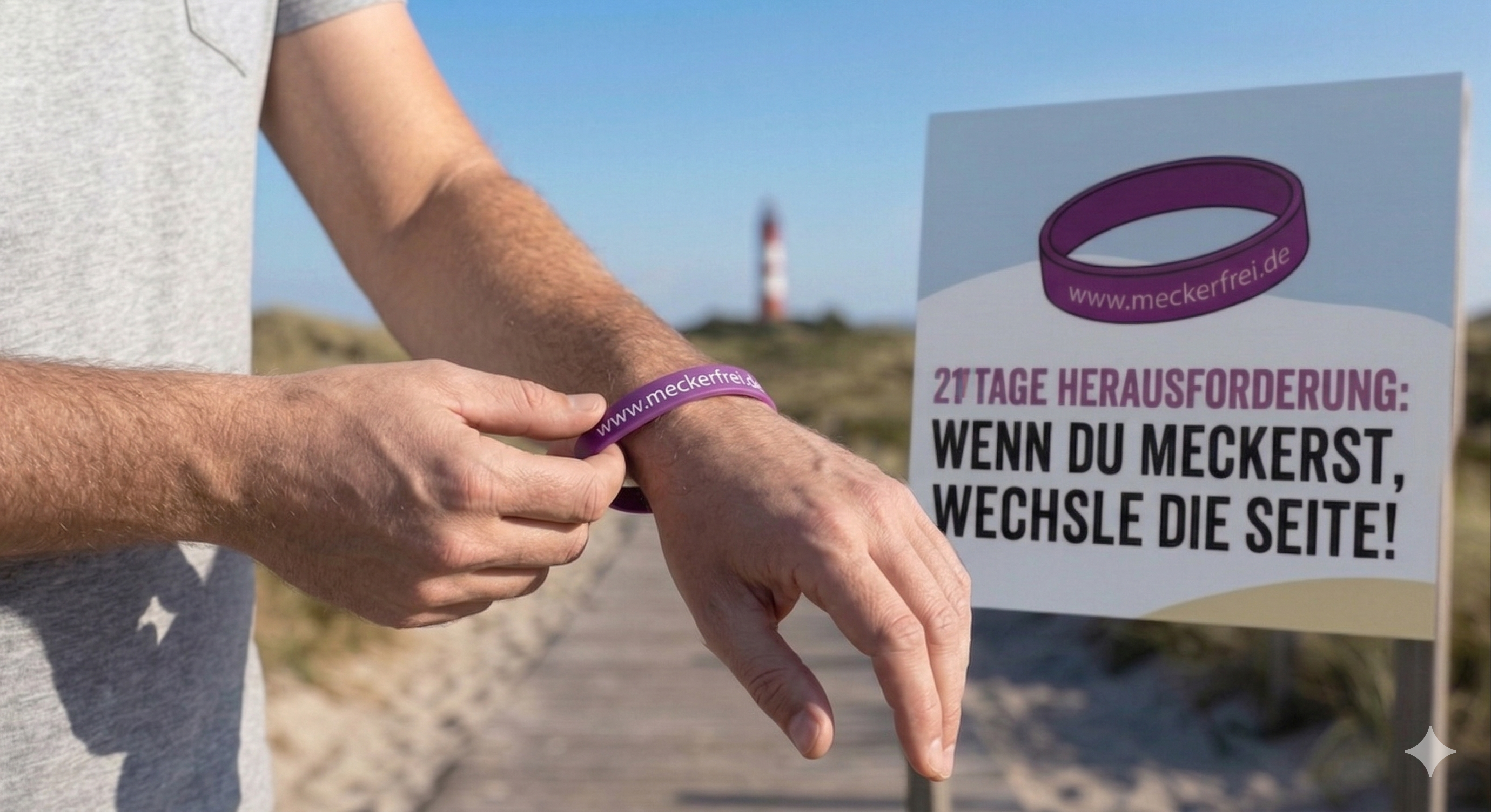 Wir laden Sie herzlich ein: Holen Sie sich Ihr kostenloses Meckerfrei-Armband in unserer Schlüssel-Lounge in Wittdün ab. Machen Sie Ihren Amrum-Urlaub zur entspanntesten Zeit Ihres Jahres – und vielleicht sogar zum Startschuss für ein positiveres Leben.